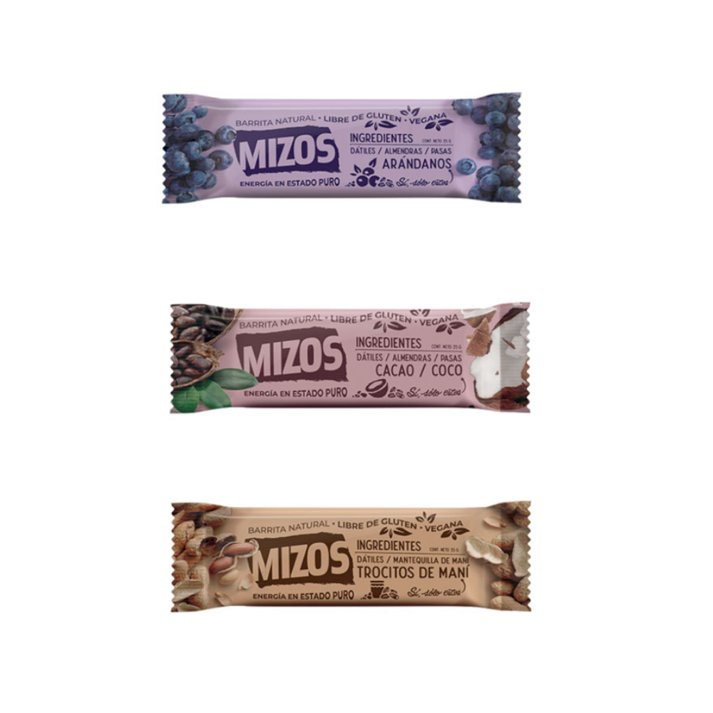 Barrita 100% natural en base a dátiles y frutos secos, con sabor a arándano. Es una barrita ideal para deportistas, colaciones y snack de media mañana. Producto Sin Gluten, certificado por Fundación Convivir.